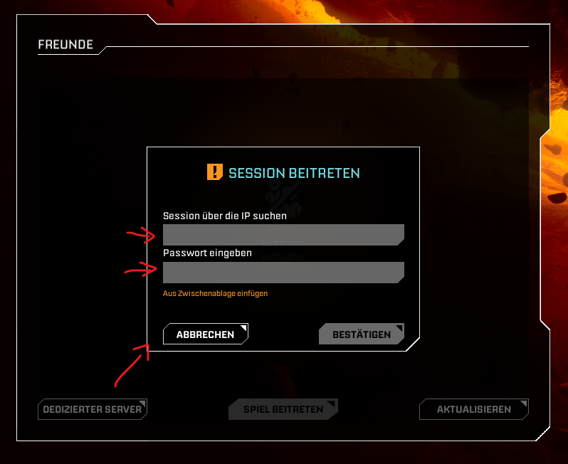 - Wähle im Hauptmenü „Spiel beitreten“